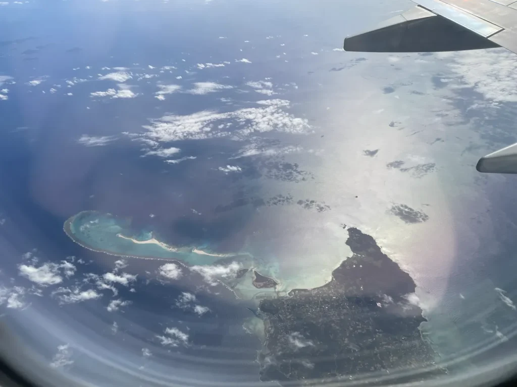 久米島上空では「はての浜」を見ることができた。なんかテンションあがるなぁ。
